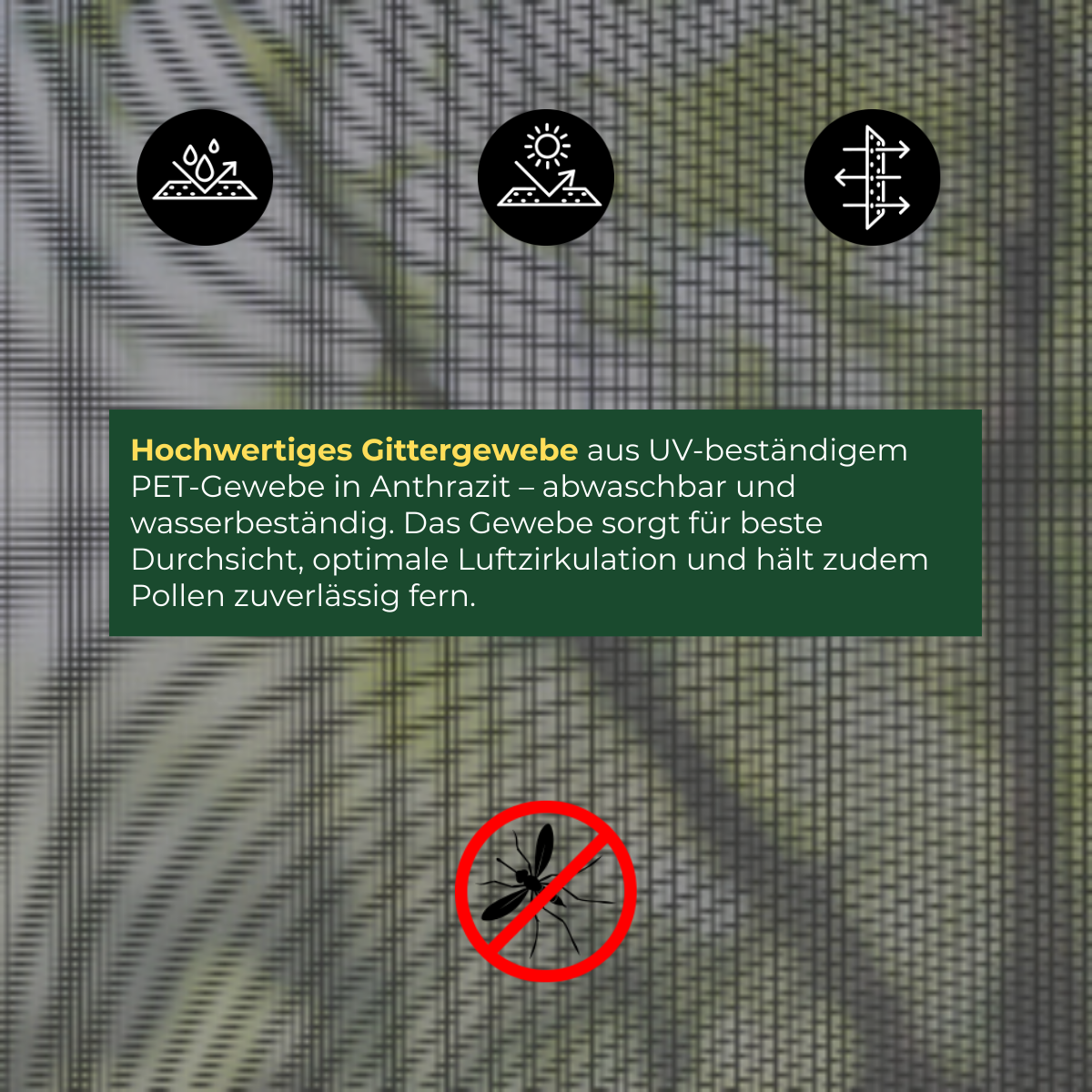 • Farbe: RAL9010 (Weiß) oder RAL7016 (Anthrazit), beide mit schwarzem Netz.